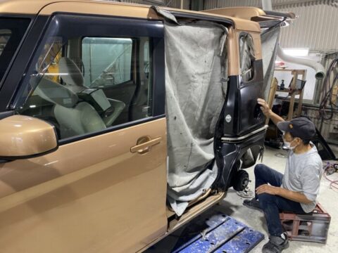 そして、スライドドア鈑金して、組み付けして‼️